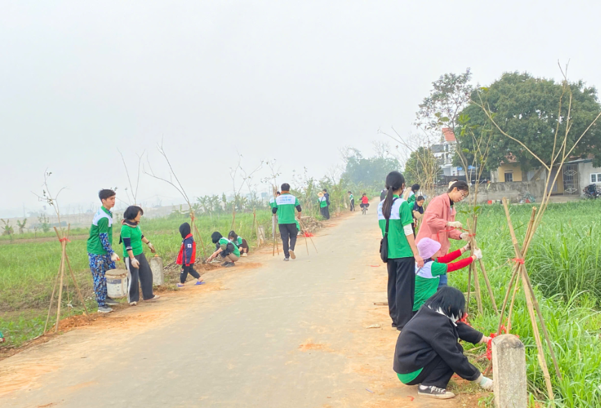 Ngay từ sáng sớm, các thành viên DPFLEX đã có mặt, khoác trên mình những chiếc áo xanh tình nguyện. Cùng với các tình nguyện viên khác, đội ngũ DPFLEX đã trồng hàng trăm cây phong linh dọc hai bên đường liên thôn, nơi có những cánh đồng lúa xanh bát ngát. Mỗi người đảm nhiệm một công đoạn, từ đào hố, tưới nước đến cố định cây con, tất cả đều chung tay chăm chút từng sự sống nhỏ bé. Kết thúc hoạt động, các tình nguyện viên cùng nhau thu gom rác dọc hai bên đường về nơi tập kết, trả lại cho con đường một diện mạo mới sạch sẽ và thoáng đãng.